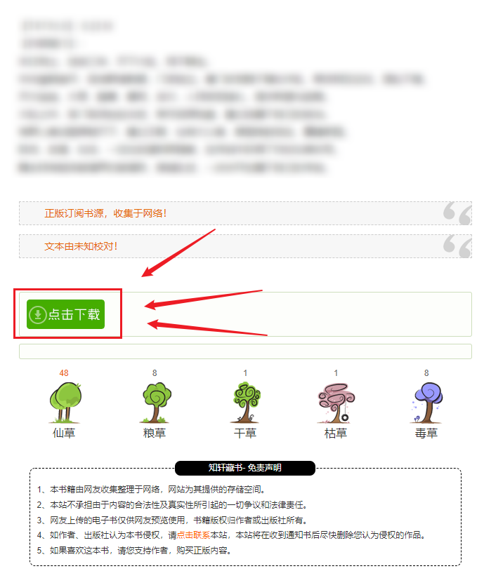 下载的话也没有套路,点击小说进入详情页,往下翻就可以看到有个点击下载的按钮。