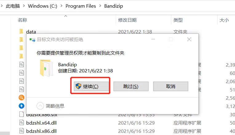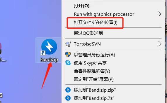 7.回到桌面,选中Bandizip鼠标右键 点击打开文件所在的位置,点击空白处,把复制的Bandizip_v7.x _x32-x64_Patch_20201104文件粘贴进去,点击继续。