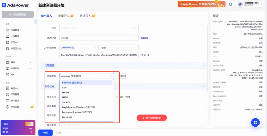 Pro:支持恢复数据,支持匹配代理地区,每天打开/导入限制=浏览器环境数*30