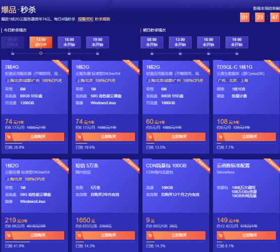 腾讯云是腾讯公司旗下的云计算服务品牌,国内知名公司、大厂,产品质量稳定靠谱,有“良心云”的美称。腾讯云现在官网的活动主要分是有两个,一个是限时秒杀活动,一个是企业上云钜惠严选专区。