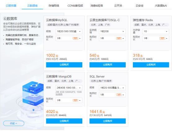 数据库:Mysql 4H16G 500G硬盘 1年 3折起
