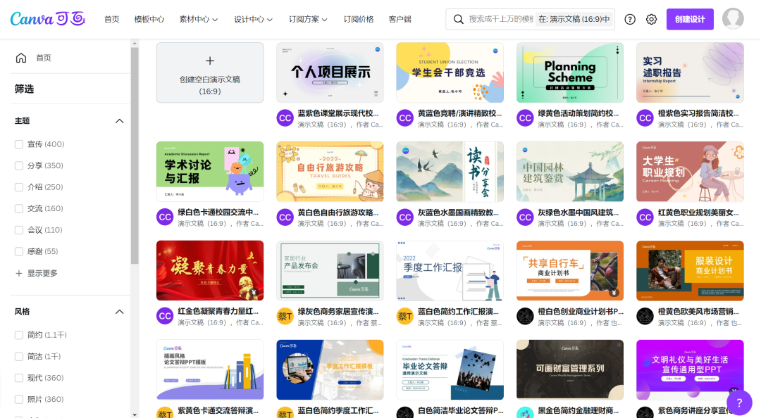 在海量的ppt模板中寻找到自己想要的模板,或者利用可画提供的素材自己设计ppt