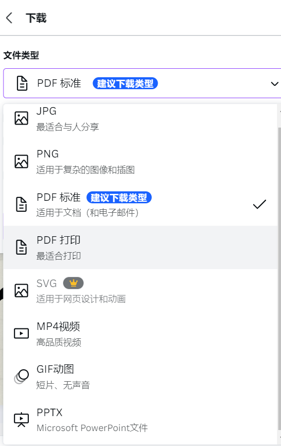 可画提供了很多种文件下载类型,大家根据自己所需的内容找到相应的文件类型进行下载即可