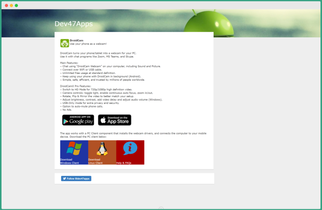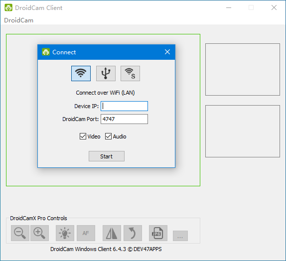 DroitCam 是一款可以将 手机摄像头 通过 WiFi 或 USB 的方式与 电脑 进行连接,然后就可以将 手机摄像头 当作 电脑 的 外置摄像头使用 的软件。跨平台支持 Windows、Linux 平台上运行( 支持 Web 浏览 ),可搭配 Android、iOS 移动设备进行使用,适合于 无摄像头 或 摄像头损坏 的情况下时解决 视频通话 的需要。