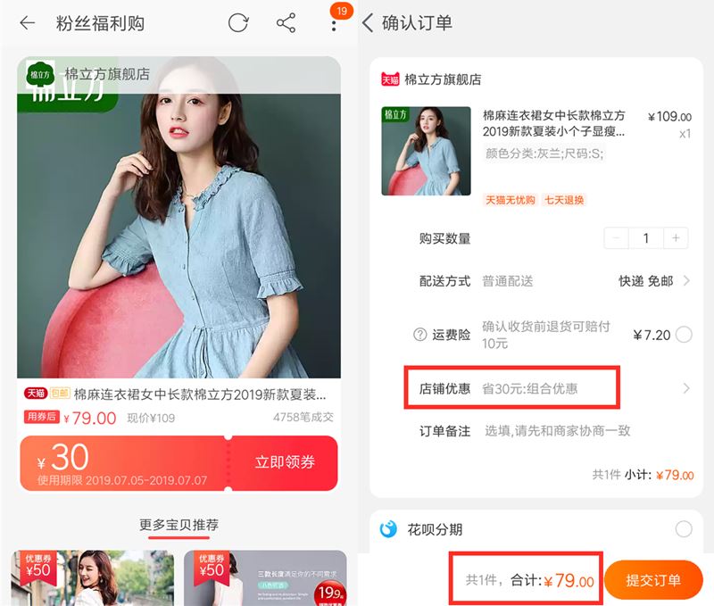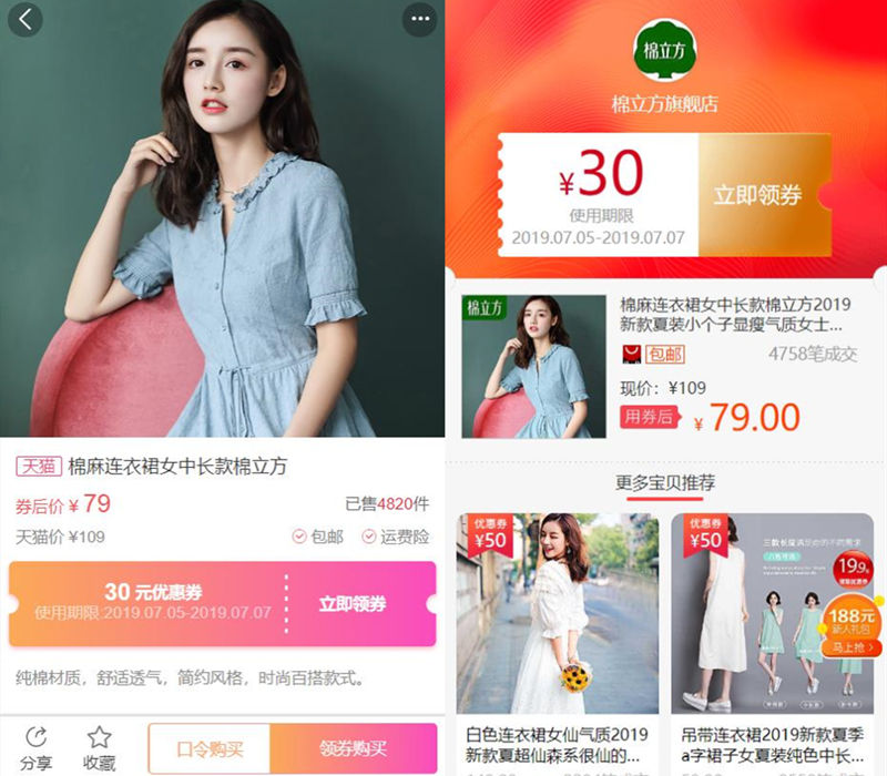 比如:某件女士连衣裙,原购买价109,按照我们平常的购买习惯,也就是对比下其它店铺的价格,然后看看有没有店铺普通优惠券,最后就是直接购买了!但是只要你通过领券的网站(https://gou.colostar.cn/)搜索到商品的优惠券,就可以直接领取使用,没有任何门槛,券后购买只需79元,直接省下了30元。(你可以随便上淘宝选购一件商品,然后按照下面的操作试试看)