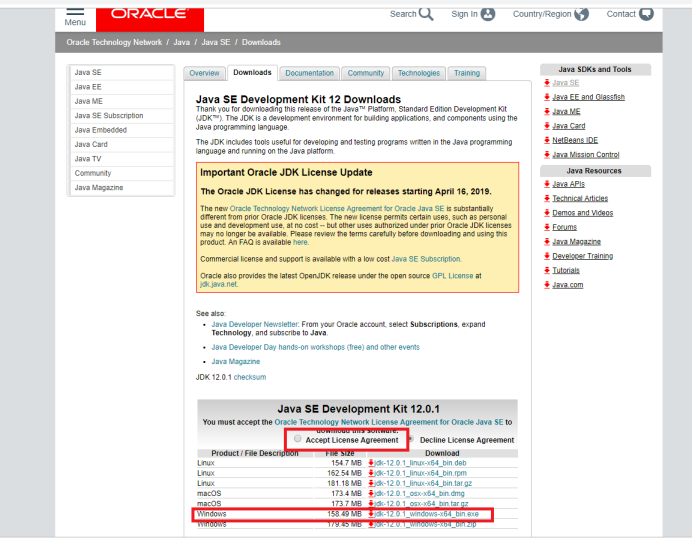 点击java之后,在第一个框中,点选Accept License Agreement