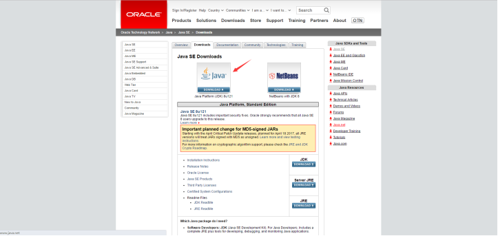 先给上下载链接:http://www.oracle.com/technetwork/java/javase/downloads/index.html