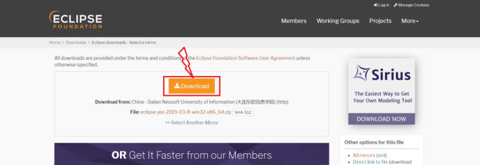 如图:根据自己的系统选择64位的,点击相应链接下载(可能会弹出一个需要你付费的页面,并不是eclipse需要付费,这只是请求你捐钱的,无需理会)