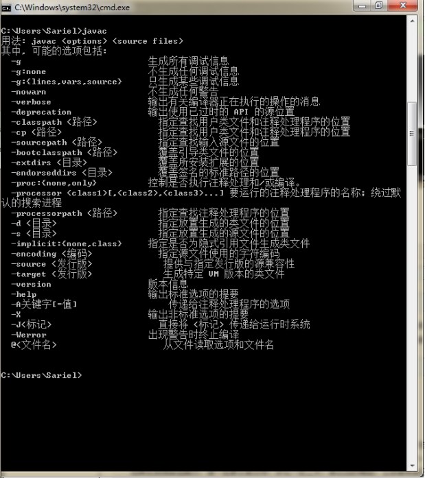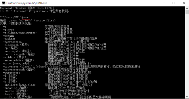2、输入“javac”,你应该看到下面的东西: