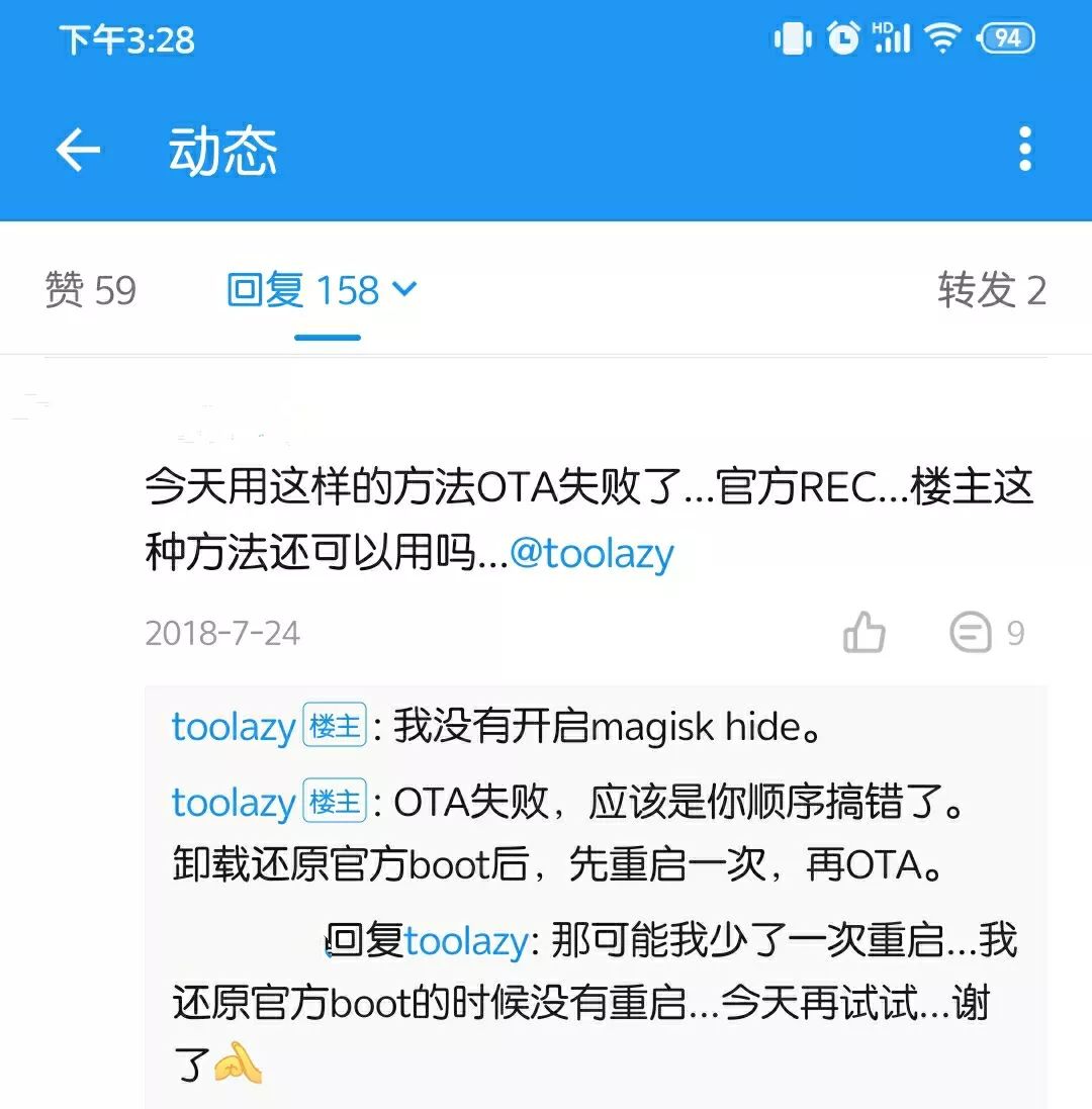 这种方式安装Magisk虽然简单,但很容易在“还原原厂镜像”后发生问题 :