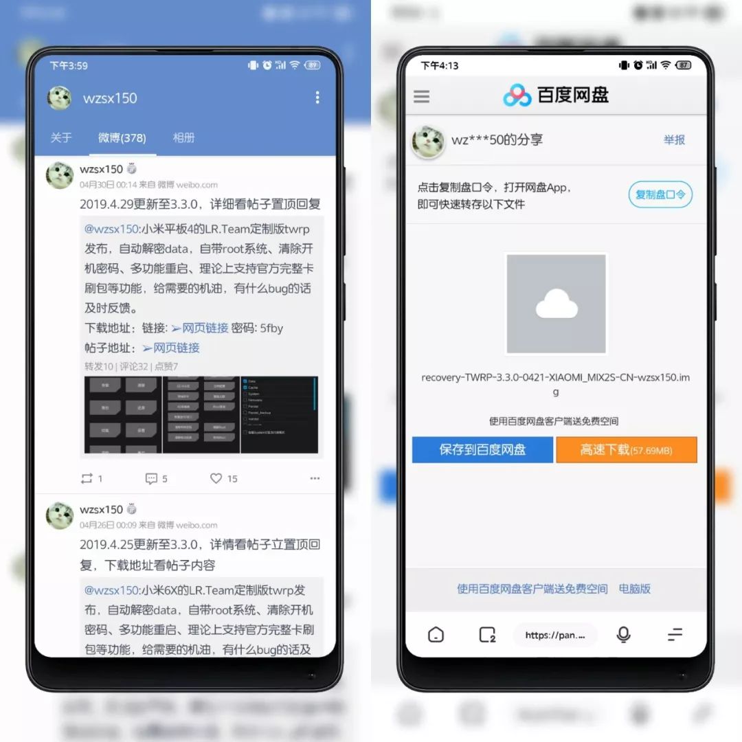 首先下载适配自己机型以及版本的REC,这里推荐关注新浪微博用户@wzsx150 ,w大更新的TWRP几乎支持了绝大部分的小米设备(包括小米平板)。