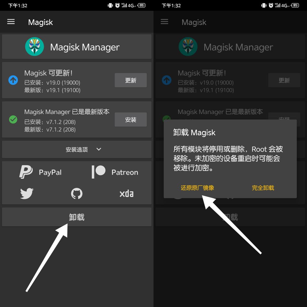 *整个过程中均保留Magisk Manager (App),不用卸载。