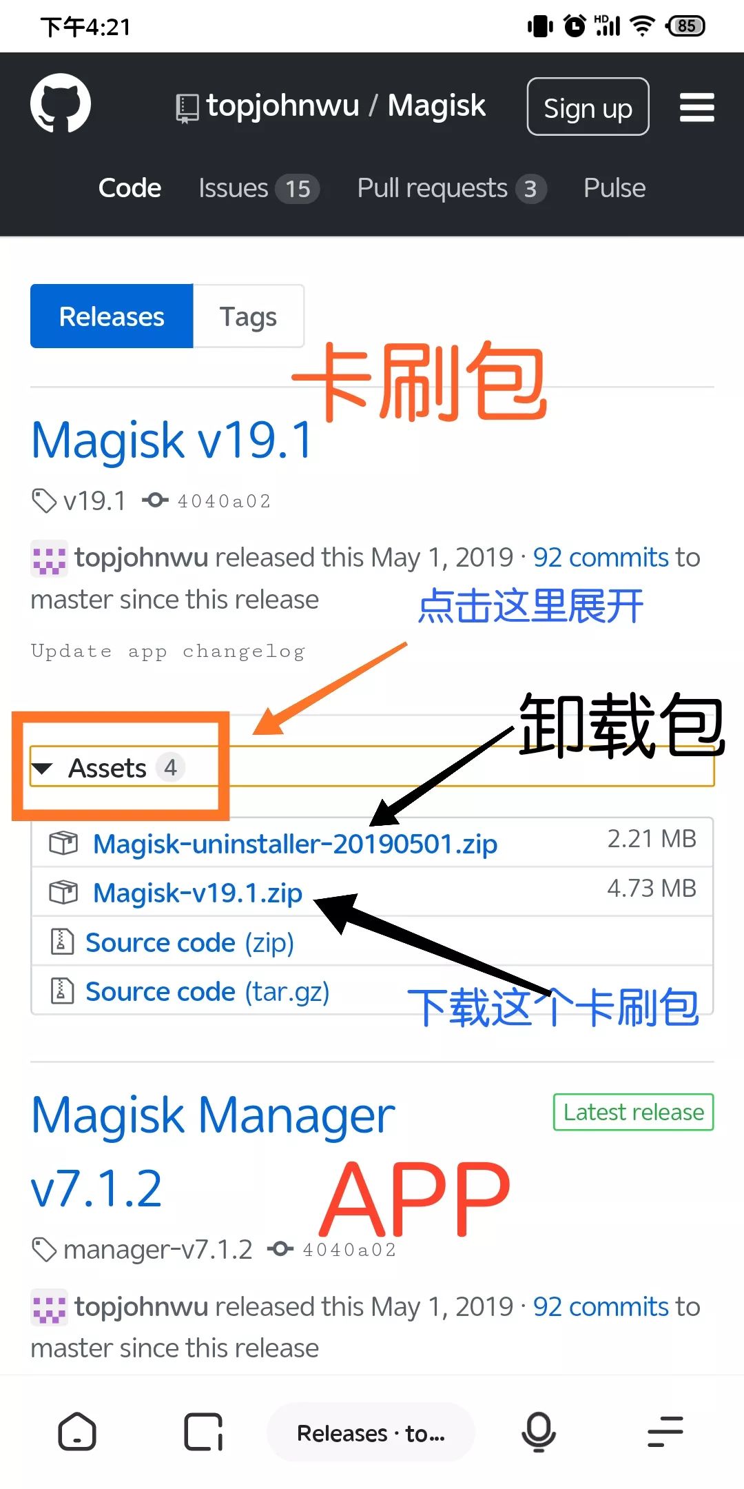 刷入完成后,不用急着重启,到下面这个网址下载Magisk卡刷包 :