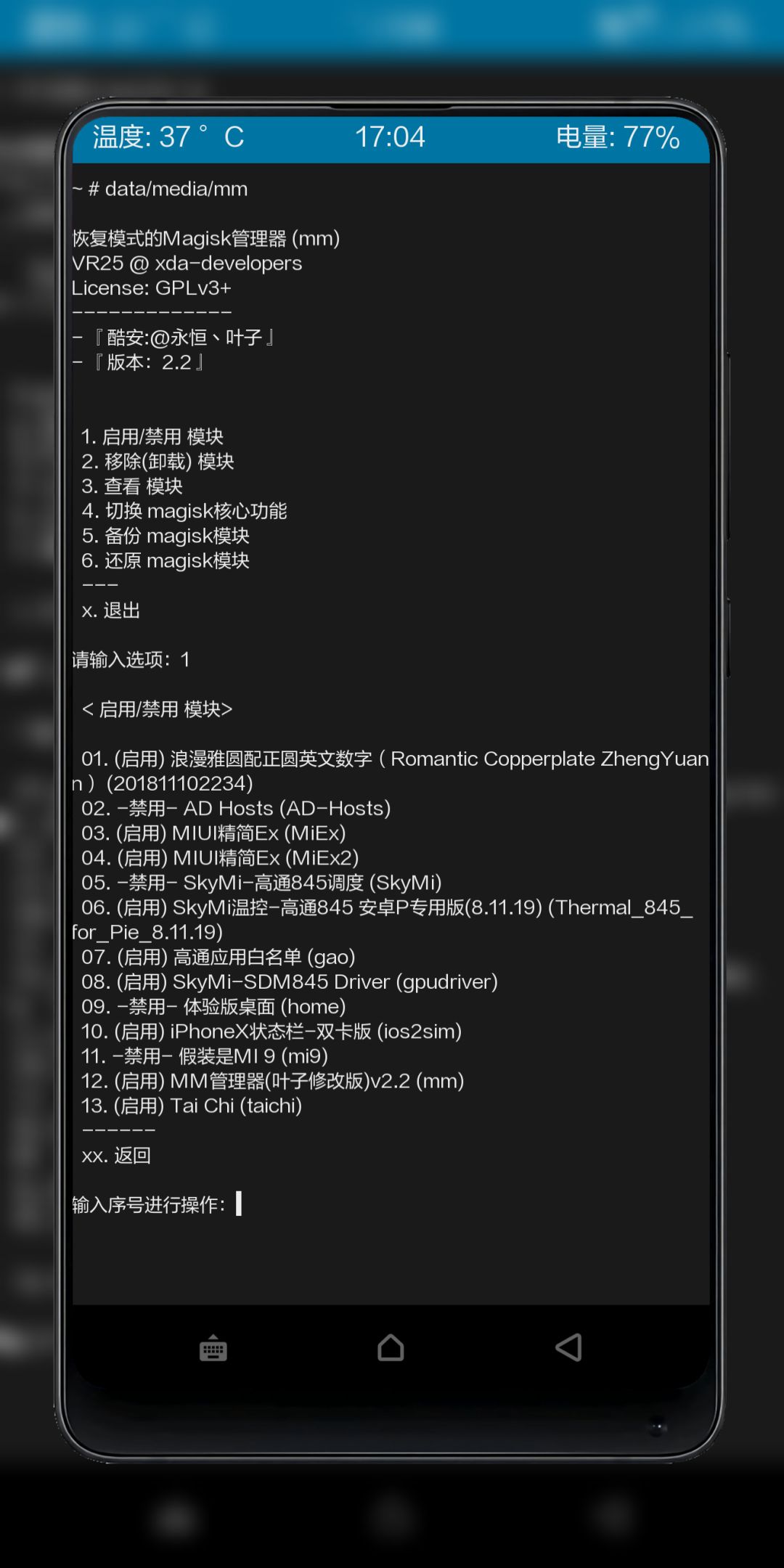 然后右下角“回车”。进入MM管理器界面,选择 1 或者 2 。然后输入序号就能卸载/禁用指定的模块。