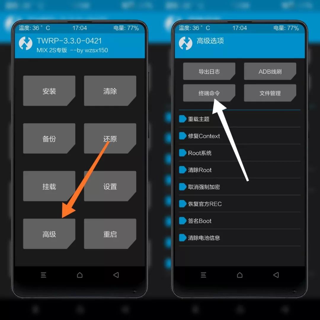 二、如果发生问题前忘记安装MM管理器也没关系,同样进入TWRP后,进入“高级” -“文件管理”,进入到这个路径 :