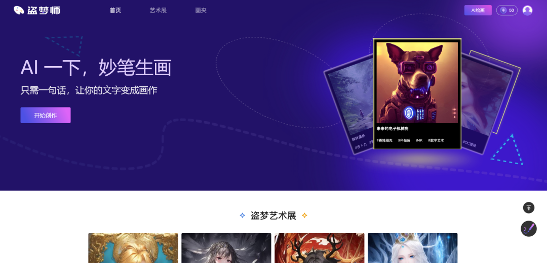 盗梦师功能上和文心一格,6pen是相似的,操作上也很方便,提供了风格和艺术家预设选项。
