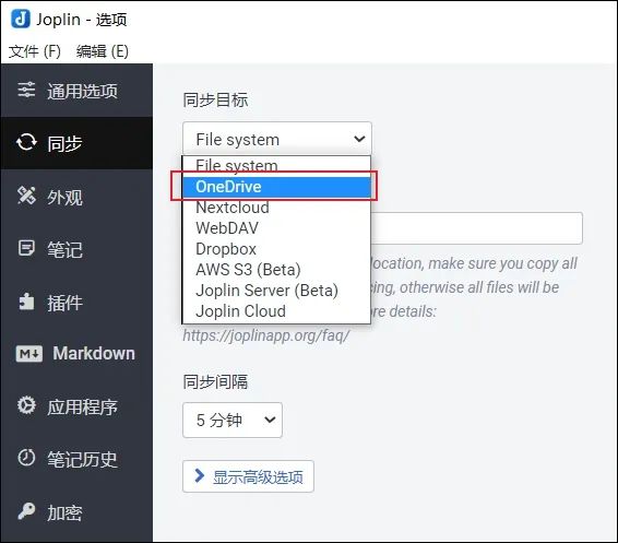 而免费的Joplin,也提供了笔记同步的功能,只不过,它更多是依靠第三方服务。