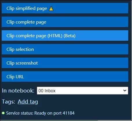 值得说明的是,要使用Joplin的网页剪辑功能,你必须在电脑上打开Joplin软件,否则是不能剪辑的。