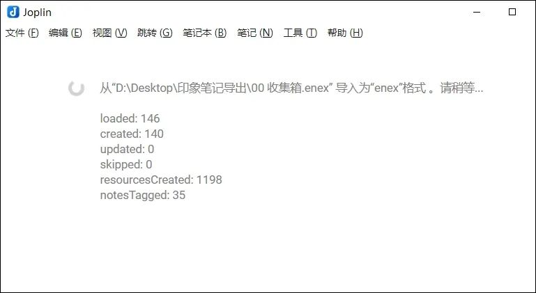 选择刚才导出的印象笔记文件,确定,然后,Joplin便开始导入: