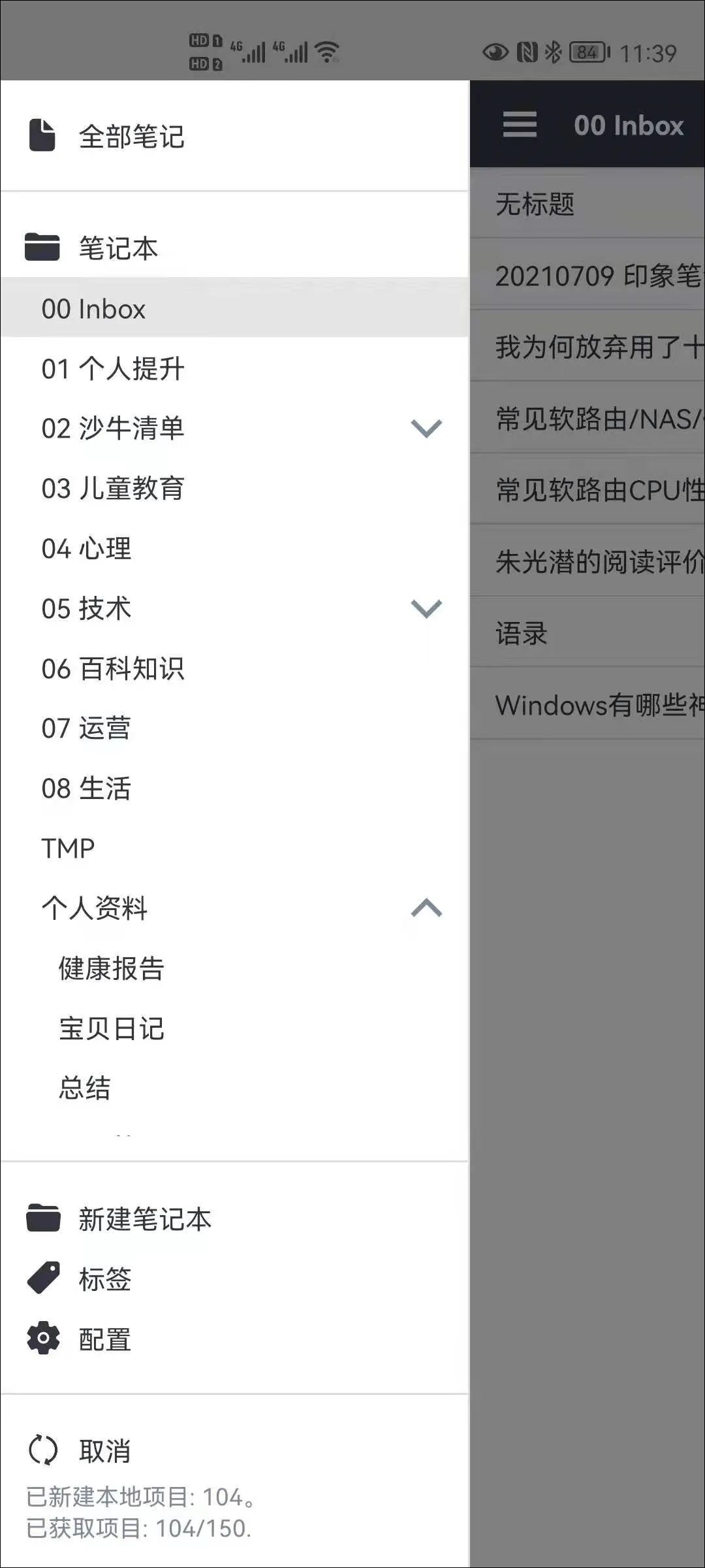 我大概导出了印象笔记中1/3的资料,约1000+条笔记 ,所导出的数量大小约1.5G(包含大量照片和附件)。
