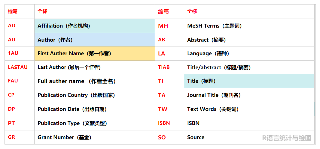 常用的检索字段标识符如下:
