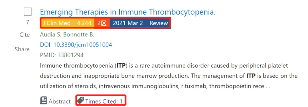 PubMed检索出的文献,可以直接看到分区、影响因子和引用次数等信息,方便快速、准确的挑选高质量的文章,再也不用在不同的网站间来回切换了