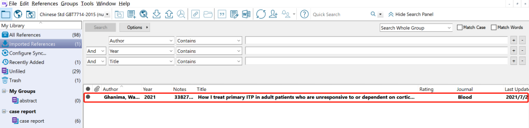 点击右侧的「Endnote」图标,自动下载Endnote导入文件,打开文件后会自动在Endnote软件中显示导入的文献
