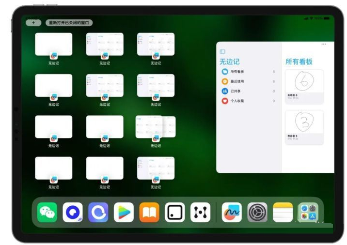该功能类似于 macOS 上的窗口,支持同一个应用打开多个窗口,目前只支持无边记和备忘录,后续可能会拓展到 Safari浏览器等应用。